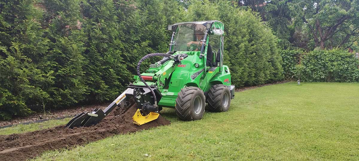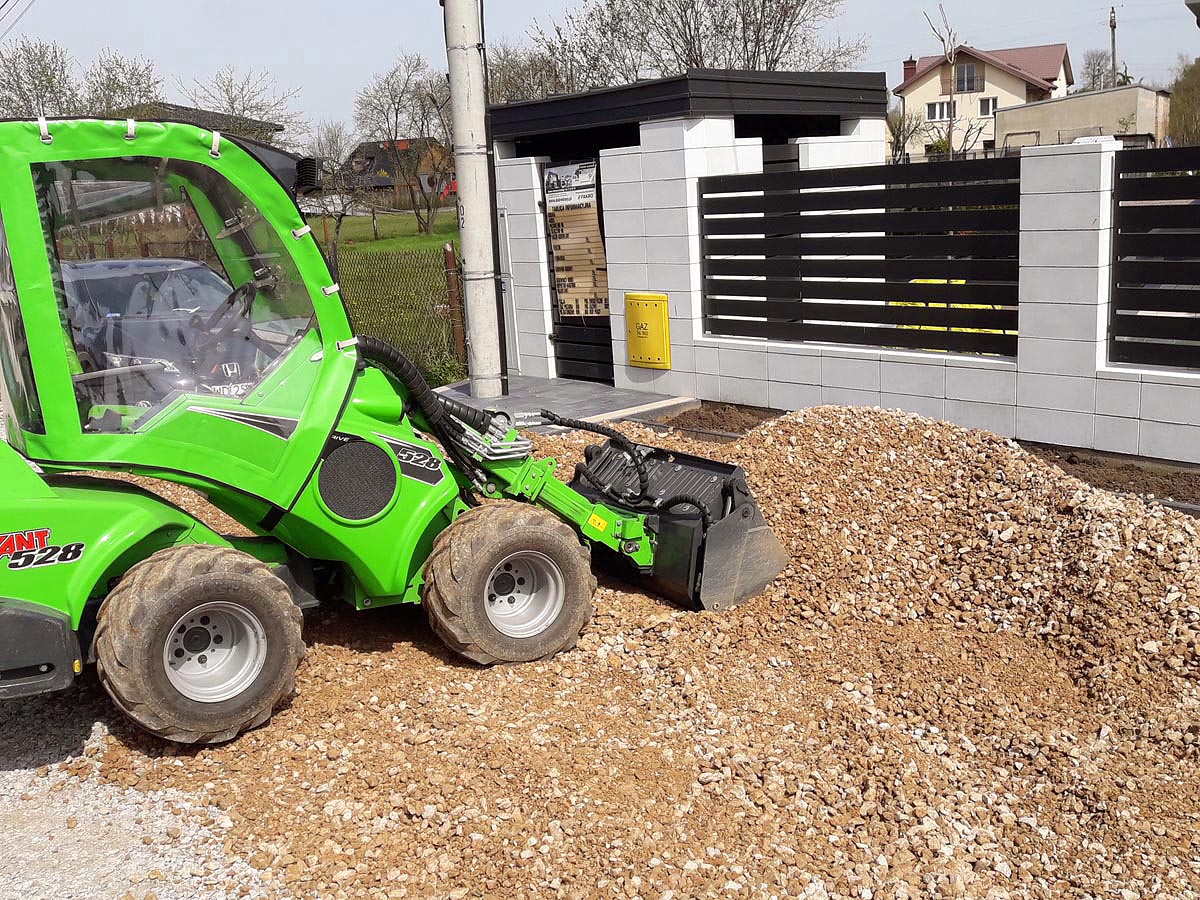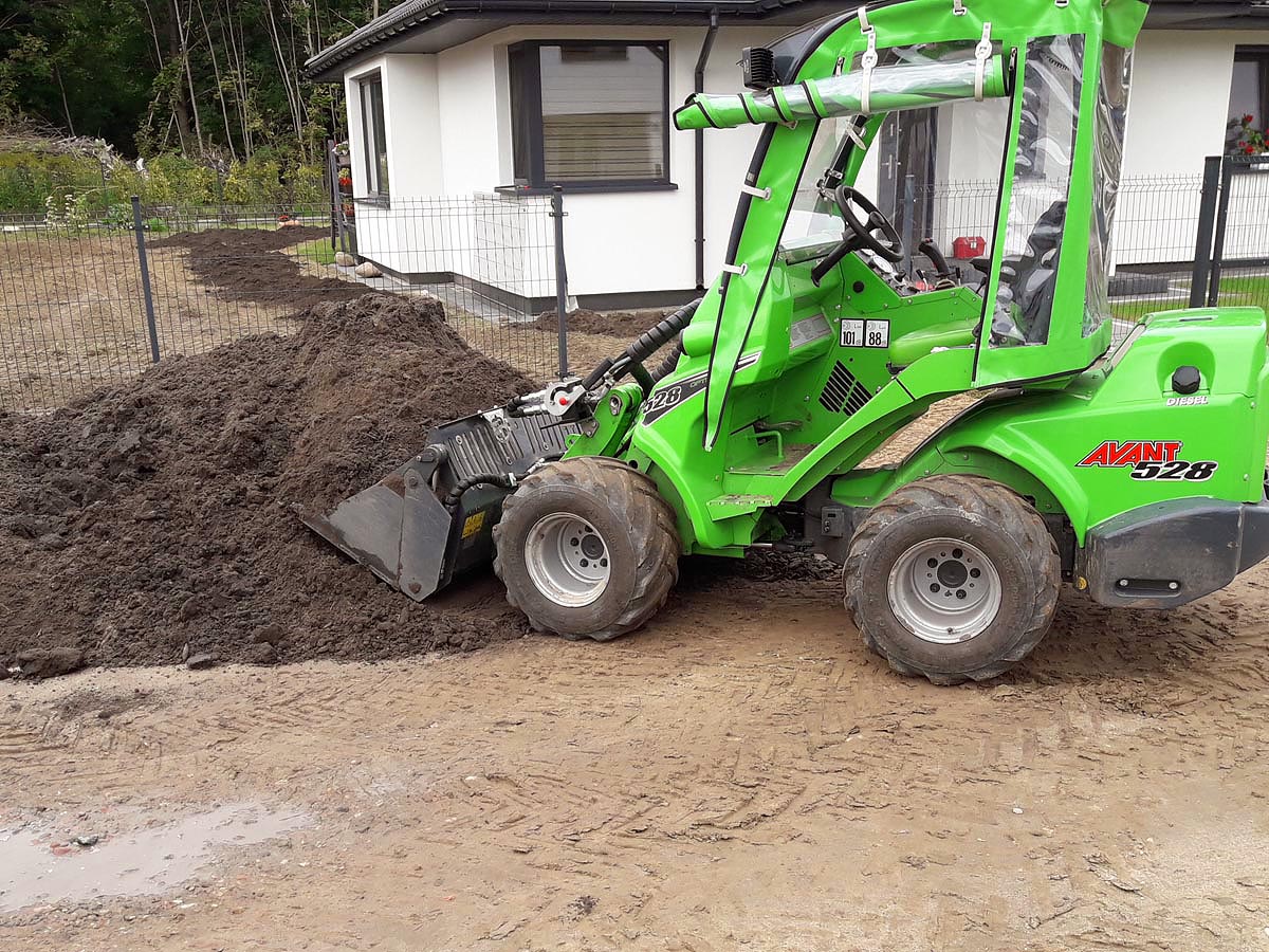 Wykonujemy prace ziemne i transportowe mini-ładowarką Avant — szybko i precyzyjnie, także na mniejszych działkach.